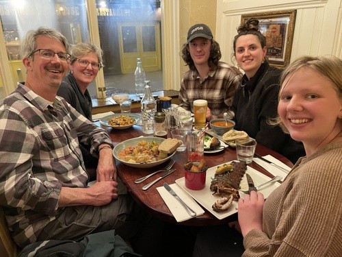 Dave’s family, including his parents, quickly became active in our church. His mom is still active, though his dad passed away in 2023. Dave and Monica had their second child, Reese, in 2009. Reese is now in 11th grade. Among other things, she loves theater, and has had some big roles in a number of CYT (Christian Youth Theater) productions. Noah has been working in the food industry, and has lived a number of places where he can snowboard and hike when he is not working. He and his girlfriend Gracie currently live in Bend, Oregon. In addition to being the family’s activity coordinator and taxi driver, Monica volunteers at Reese’s school and on the church’s A/V team. She enjoys having dogs, doing puzzles and watching TV (she and Dave are huge “Survivor” and “Married at First Site” fans). They love to travel, exploring new places in and outside of the United States.